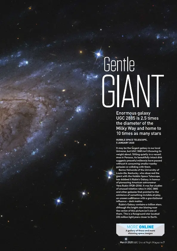 The enormous spiral galaxy ugc 2885, nicknamed rubin's galaxy after astronomer vera rubin.